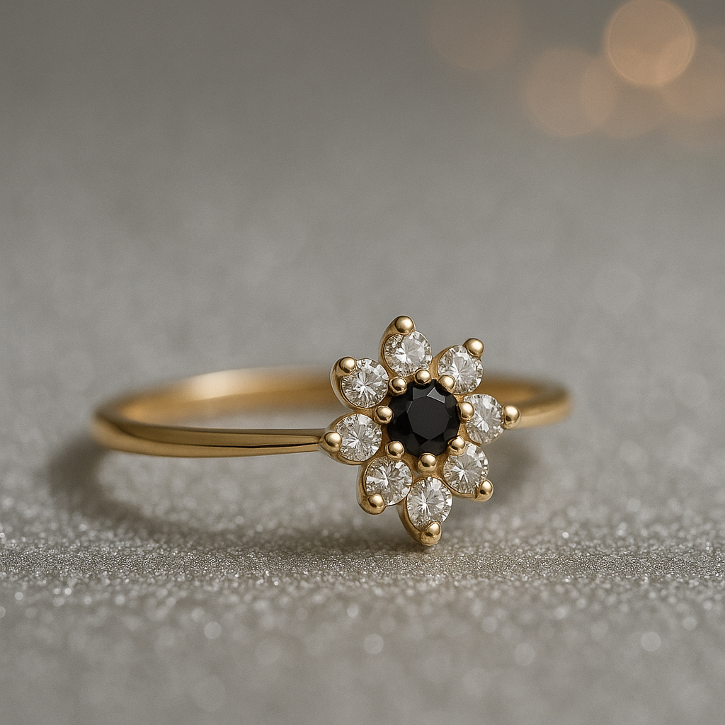Forjado en oro 18 kilates y con un brillo que encanta, este anillo es ideal para quienes buscan un toque de distinción con un aire poético ✨🖤💛.