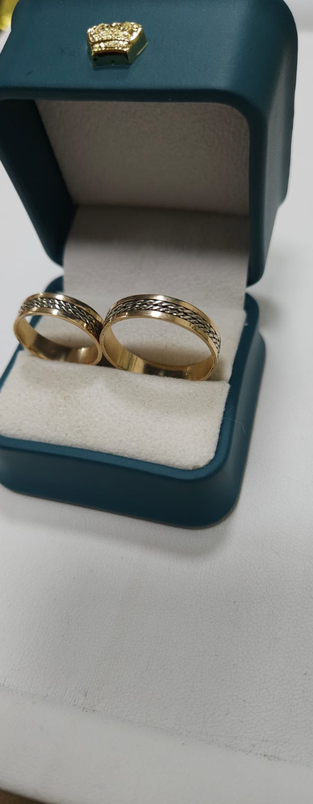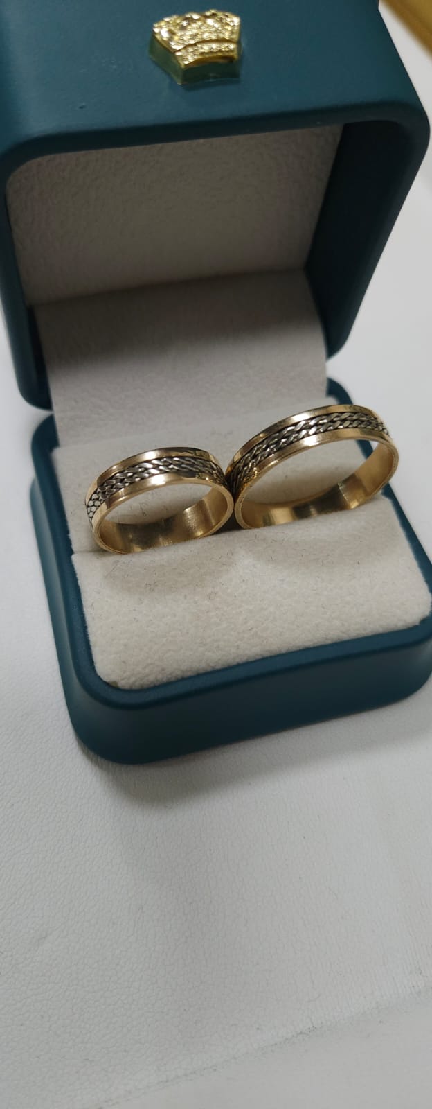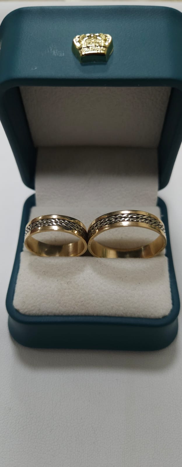 Elegantes y atemporales argollas elaboradas en oro amarillo combinado con oro blanco, una fusión que simboliza la unión perfecta entre tradición y modernidad. Su diseño bicolor realza el brillo natural del oro y las convierte en una joya ideal para celebrar compromisos, matrimonios o aniversarios especiales.
