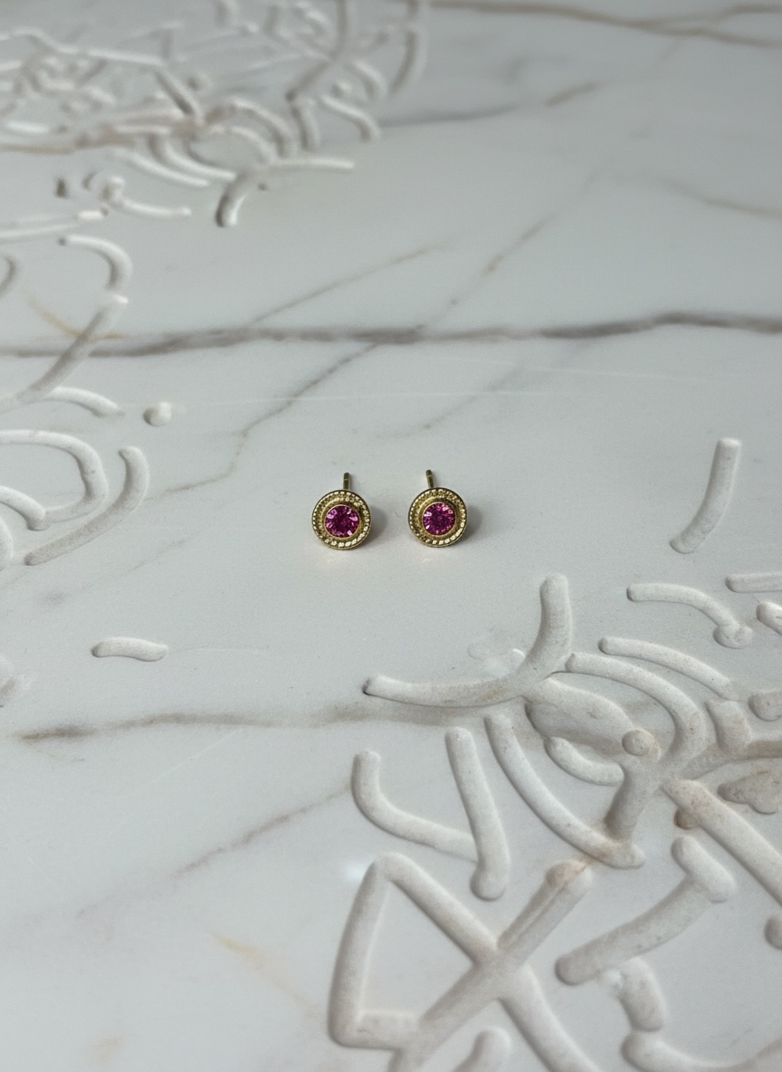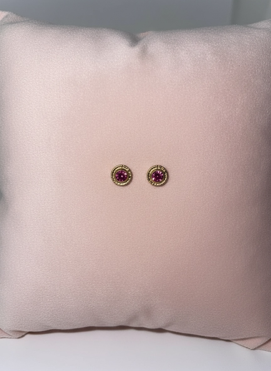Delicado arito para bebé en tono rosado, modelo N°3, especialmente diseñado para brindar comodidad y seguridad. Cuenta con tornillo de protección, ideal para oídos sensibles y para un uso seguro en el día a día. Su diseño suave y clásico lo convierte en una joya perfecta para acompañar las primeras etapas del bebé.