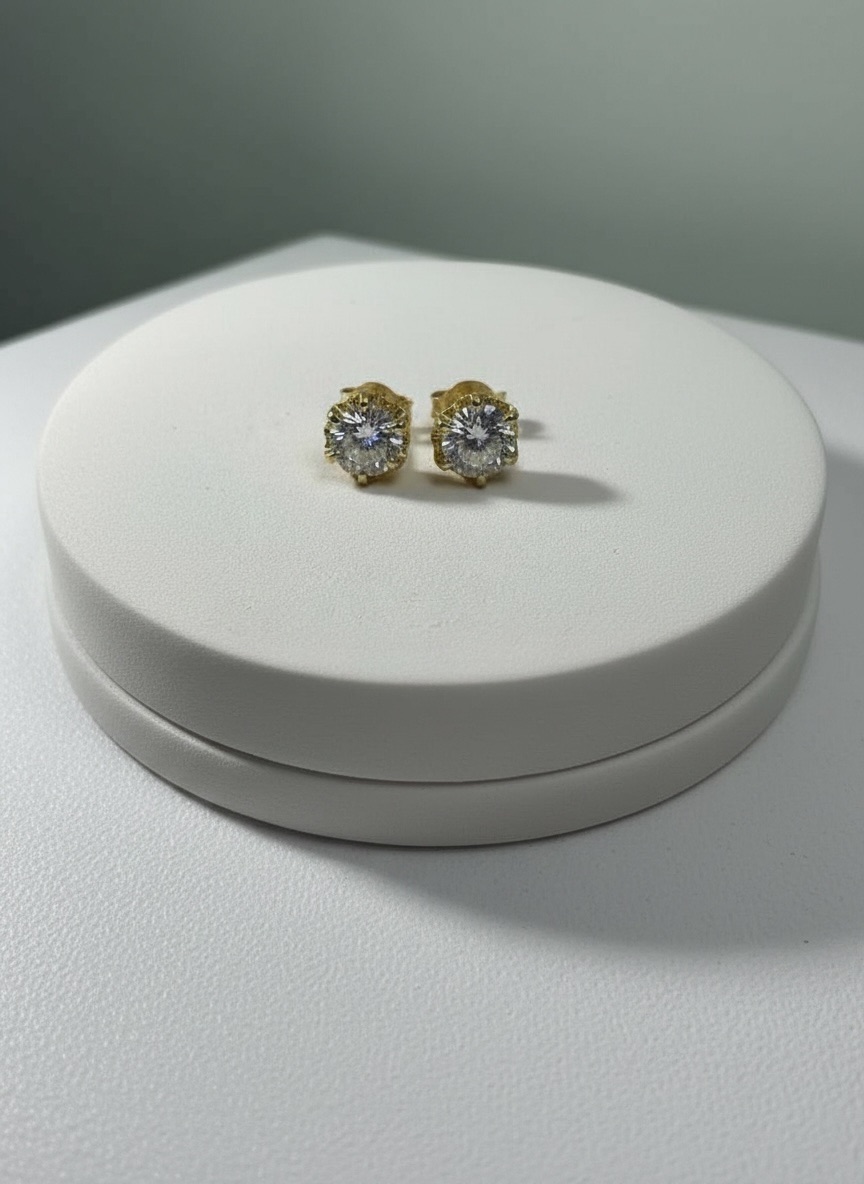 Estos finos aros chatón redondo, trabajados en auténtico oro 18 kilates, destacan por su diseño clásico y su brillante montaje que realza la luz de manera delicada y uniforme. Su peso de 1,9 gramos ofrece una presencia equilibrada, logrando una joya cómoda, sofisticada y perfecta para el uso diario o para complementar un look más elegante.