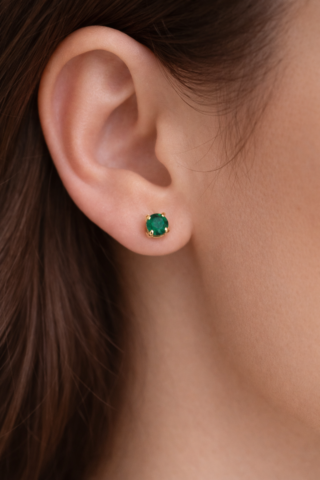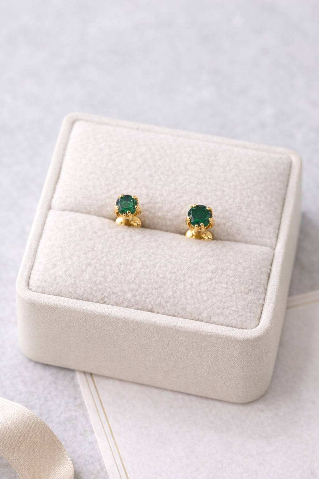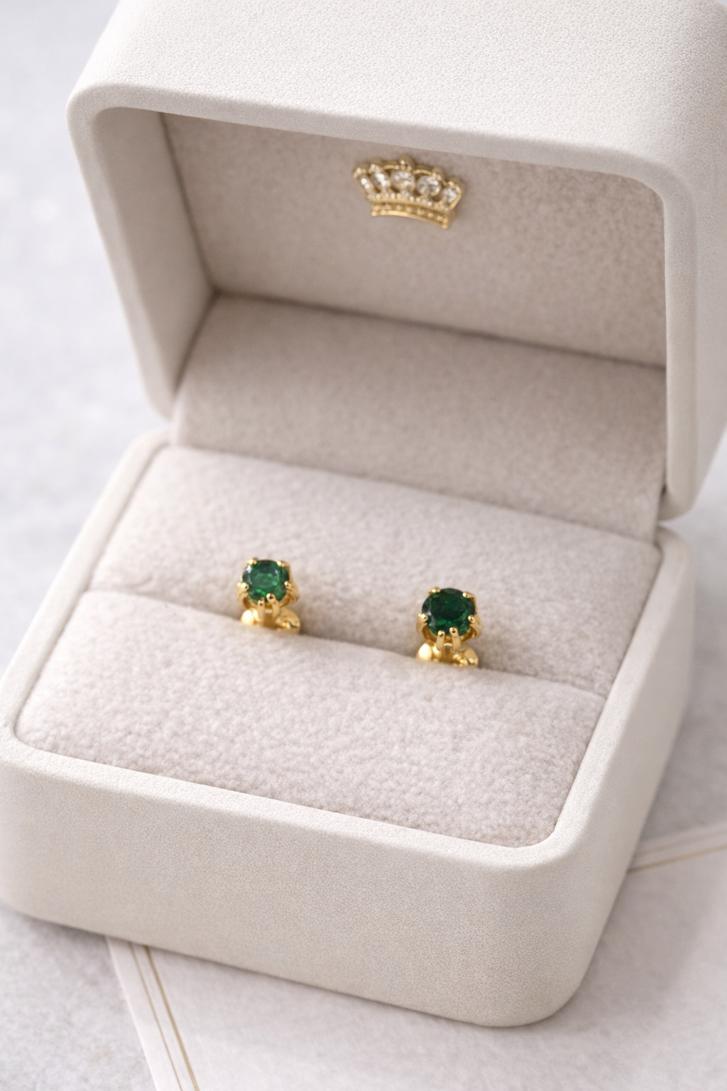 Estos aros de oro italiano destacan por su diseño refinado y su delicada presencia, ideales para quienes valoran la elegancia atemporal. Fabricados en oro 18 kilates, combinan la pureza del metal con el brillo profundo de una piedra esmeraldina, cuidadosamente engastada para realzar su color y luminosidad.