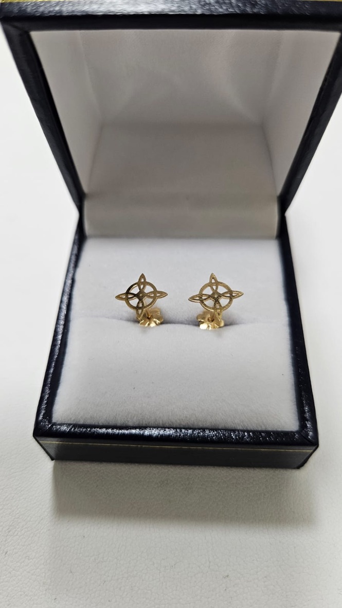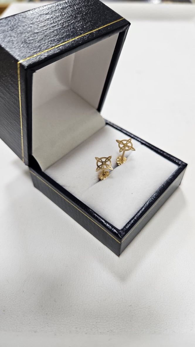 ✨ Aros Nudo de Bruja en Oro 18K – 0,7 g con Tornillo de Seguridad