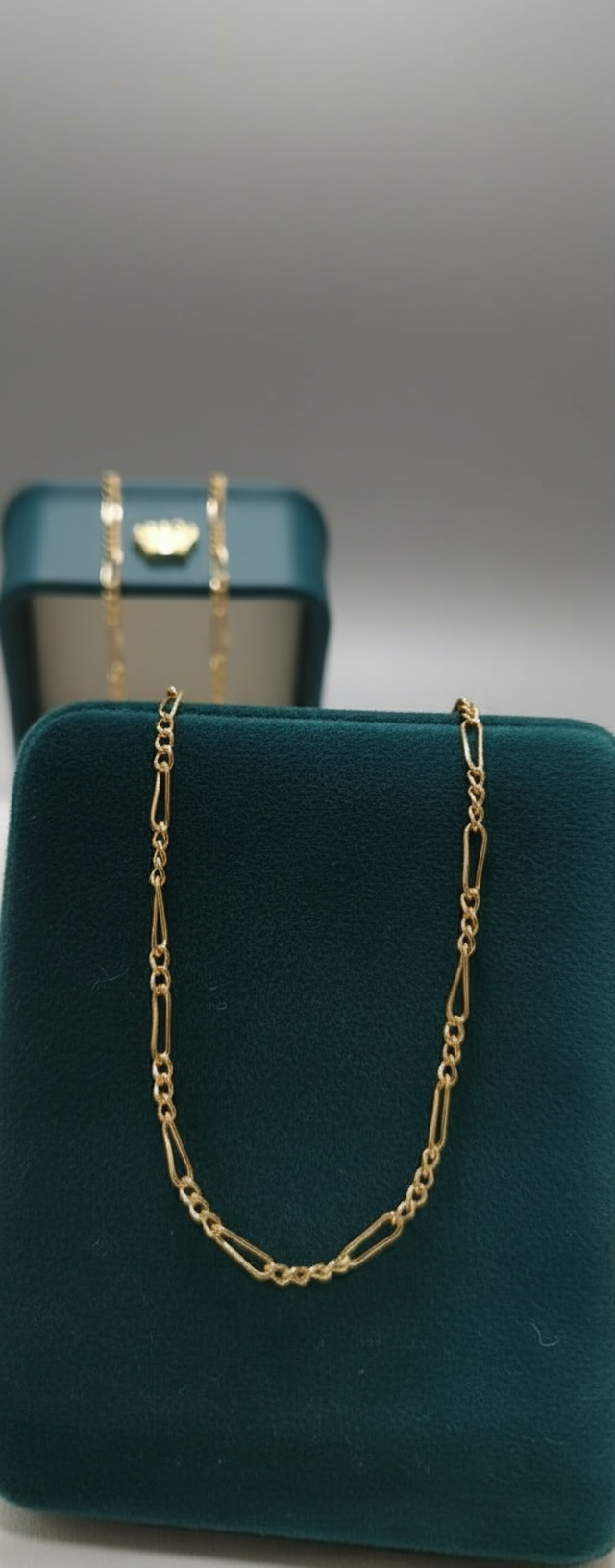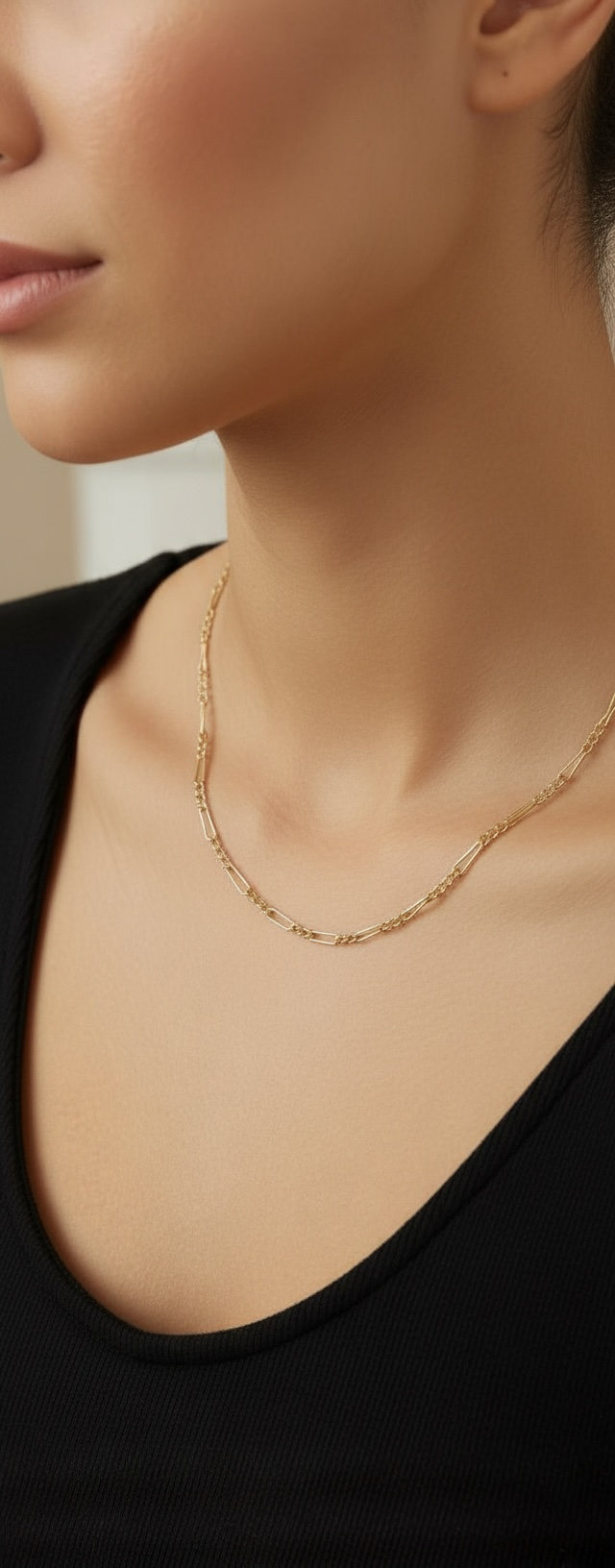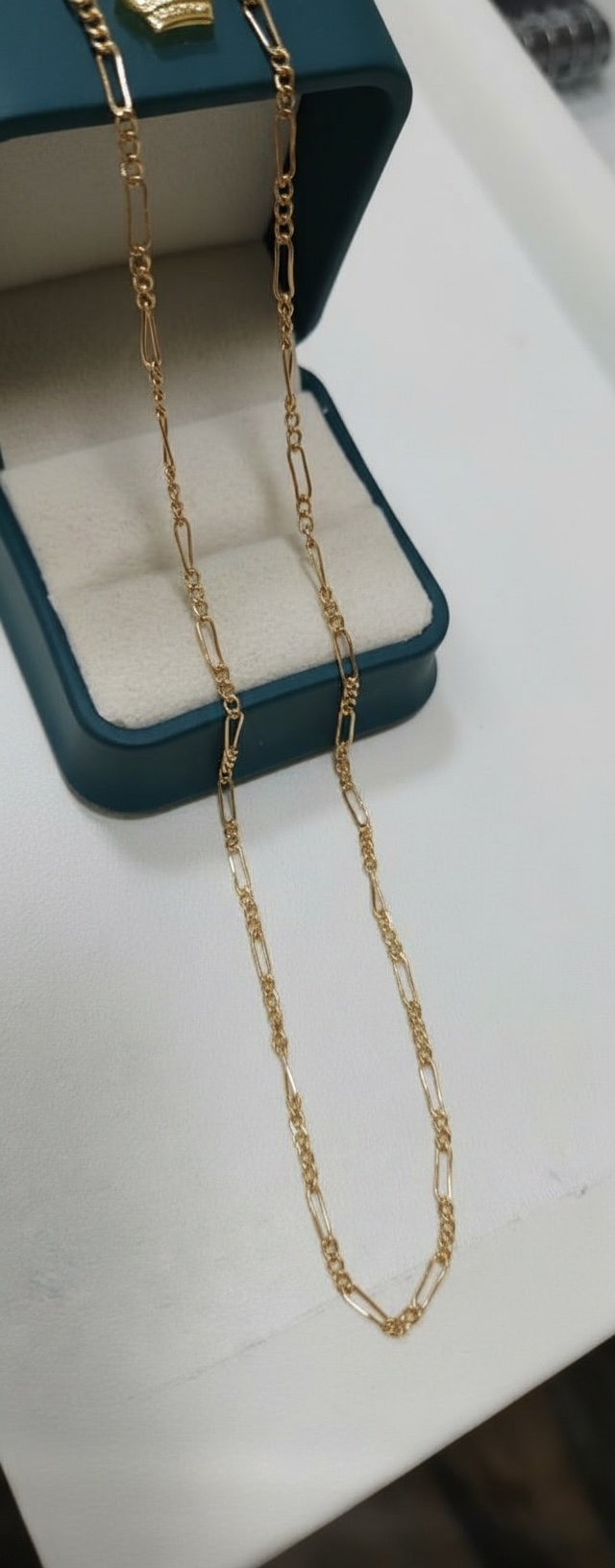 Confeccionada en oro de 18 kilates, esta cadena combina durabilidad, valor y belleza, siendo perfecta para usar sola o acompañada de un colgante, tanto en ocasiones especiales como en el uso diario.