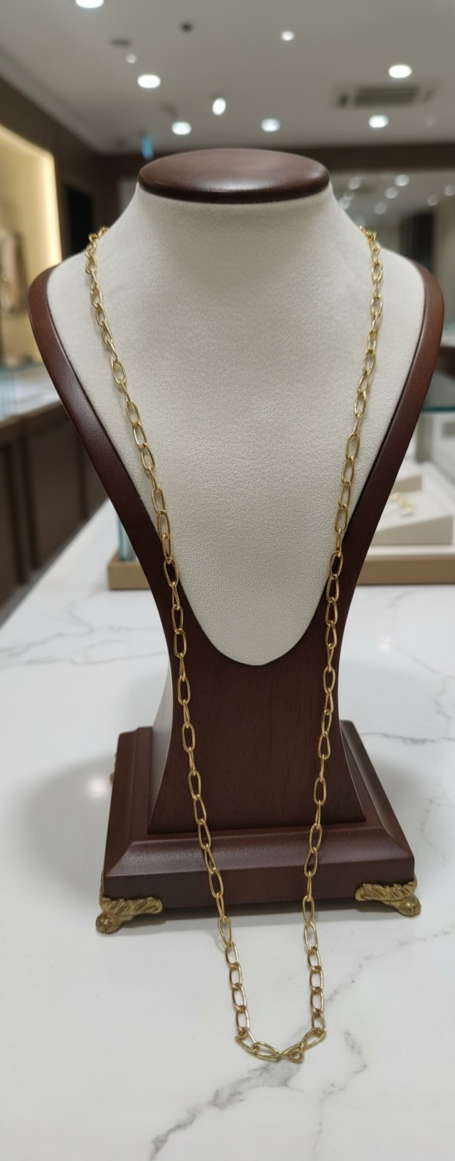 Elegante y atemporal, esta cadena modelo americana es una pieza clásica que destaca por su solidez, brillo y versatilidad. Con un diseño tradicional de eslabones firmes y bien definidos, es ideal para usar sola o acompañada de un colgante, adaptándose perfectamente a un estilo diario o más formal.