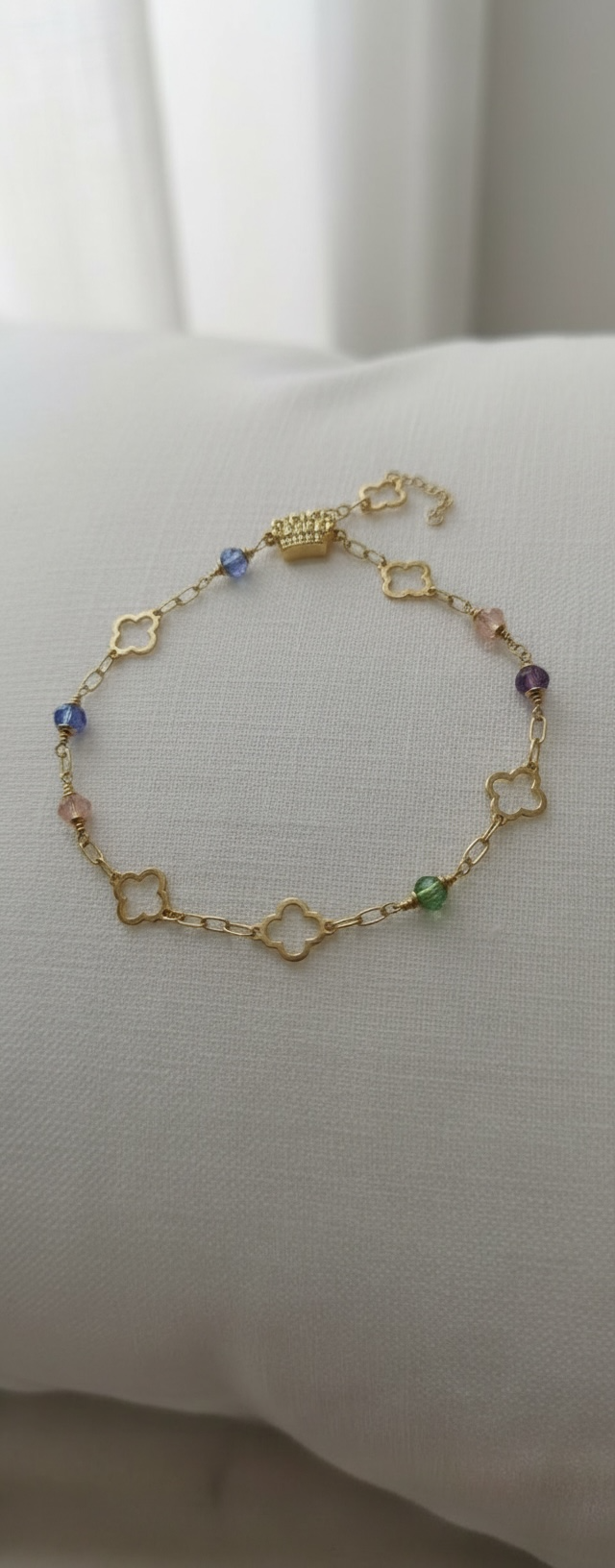 Pulsera exclusiva elaborada en oro de 18 quilates, con un peso aproximado de 2,4 gramos, diseñada para quienes valoran la elegancia sutil y la calidad atemporal. Su diseño delicado y refinado la convierte en una joya perfecta para el uso diario o para complementar ocasiones especiales.