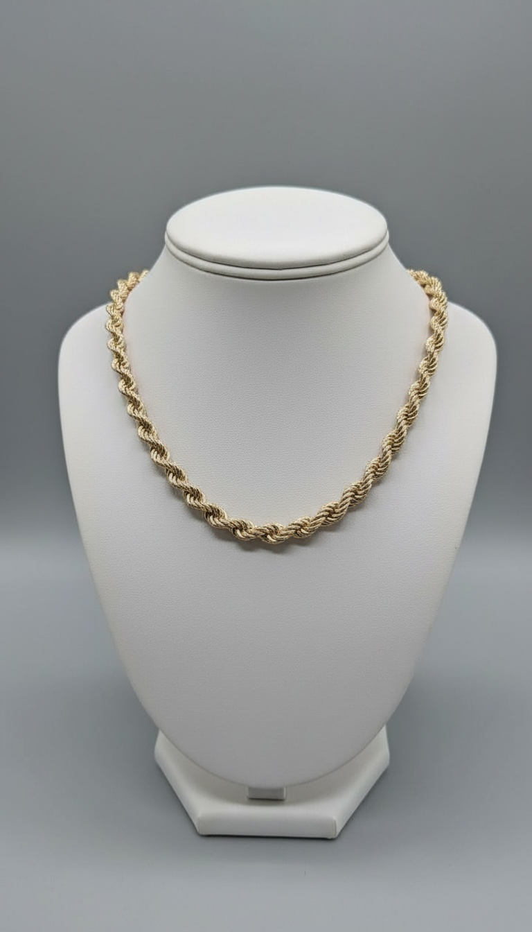 Imponente y refinada, esta cadena Turbillón nacional de 50 gramos combina fuerza, presencia y un brillo excepcional. Su diseño sólido y bien trabajado la convierte en una pieza destacada, ideal para quienes buscan elegancia con carácter. Con 60 centímetros de longitud, cae con perfecta proporción sobre el pecho, realzando cualquier estilo.